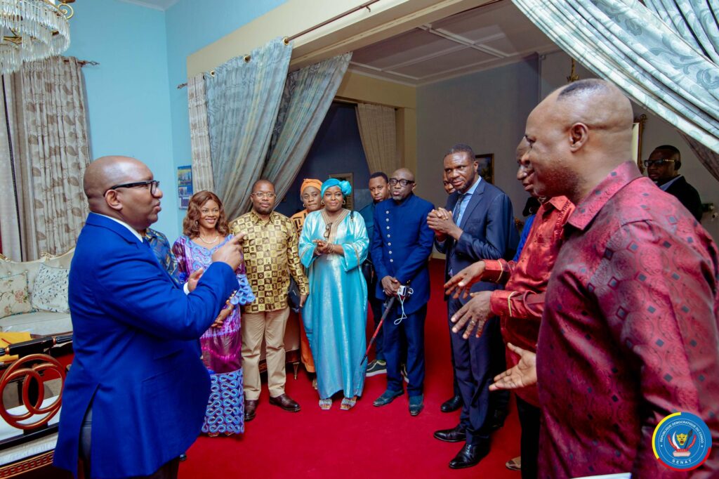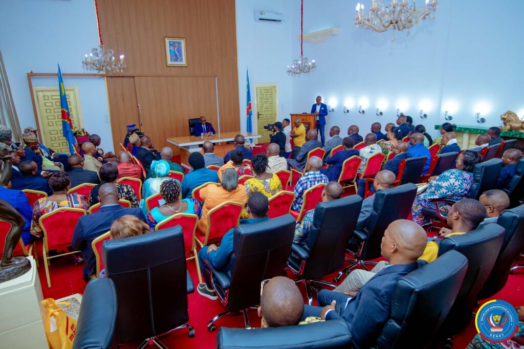 La rencontre s’est conclue par un geste symbolique : les représentants de l’Union sacrée de la Nation ont offert au président du Sénat un présent en malachite représentant la carte de la République démocratique du Congo, en signe de reconnaissance et de soutien.